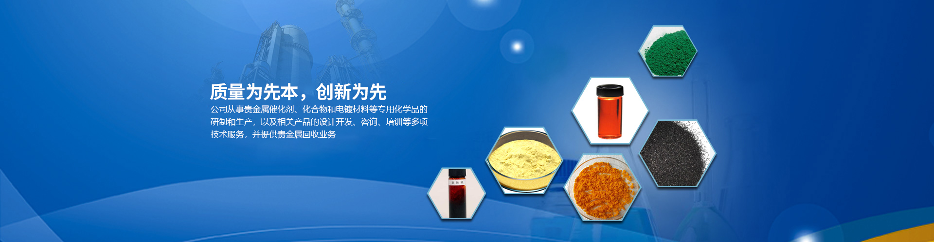 目前公司的主要產(chǎn)品有:醋酸鈀、氯化鈀、硝酸鈀、硫酸鈀、氯鉑酸、反-二(三苯基膦)二氯化鈀、四(三苯基膦)鈀、乙酰丙酮鈀;三氯化銠、辛酸銠、碘化銠、硝酸銠、醋酸銠、三苯基膦氯化銠、三苯基膦乙酰丙酮羰基銠、三苯基膦氯化銠、乙酰丙酮二羰基銠等,廣泛應用于藥物合成、石油化工、精細化工和電鍍領(lǐng)域。本公司對所有產(chǎn)品進行嚴格檢測從定量和定性方面嚴把質(zhì)量關(guān),并通過ISO90001質(zhì)量體系認證。